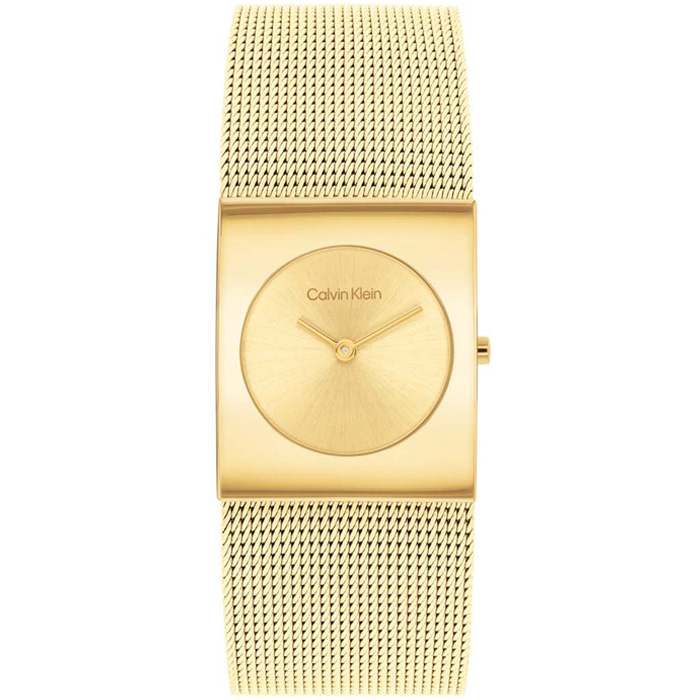 Het Calvin Klein Pulse CK25100062 horloge is een prachtig ingetogen horloge voor dames. Het horloge heeft een goudkleurige edelstalen milanese band.Het CK CK25100062 horloge heeft een rechthoekige goudkleurige edelstalen kast en een goudkleurige wijzerplaat. De wijzerplaat van dit horloge is voorzien van de naam Calvin Klein en goudkleurige wijzers. De breedte van de horlogekast is ca. 24 mm.De Calvin Klein CK25100062 heeft een quartz uurwerk, mineraal glas en is 3ATM waterdicht.