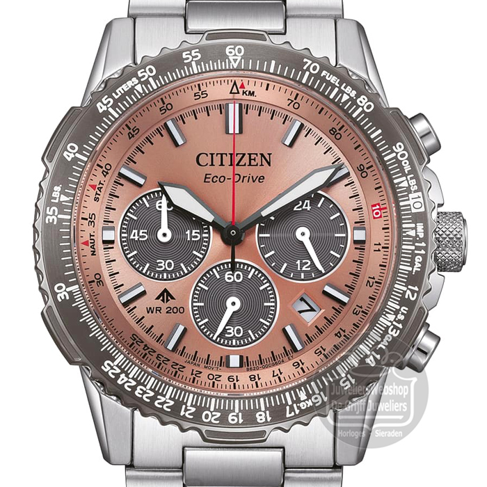 Dit Citizen horloge is voorzien van Eco-drive techniek, waardoor u nooit meer een nieuwe batterij hoeft in te zetten. De accu in het horloge wordt opgeladen door lichtinval op de wijzerplaat.