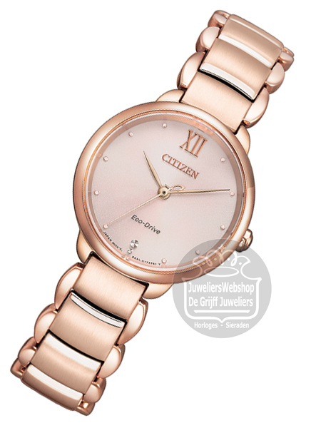 Citizen horloge EM0922-81X Elegance Eco Drive dames Edelstaal PVD Rose goudkleurig verguld