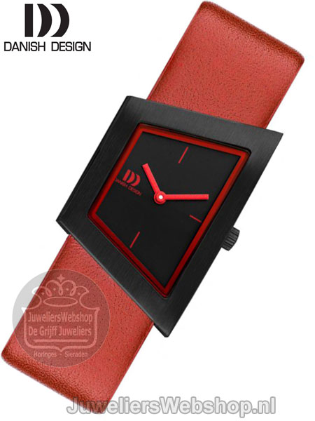 Het IV20Q1207 dameshorloge van Danish Design heeft een opvallende look. Het dames horloge heeft een zwarte edelstalen kast, een rode leren band en een zwarte wijzerplaat met rode accenten en het Danish Design logo in het rood. Het horloge heeft een quartz uurwerk, mineraal glas en is 3 atm waterdicht.