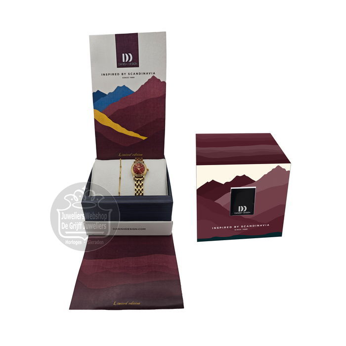 Danish Design Eloise Link 1310 horloge IV97Q1310-SET Goldplated Burgundy