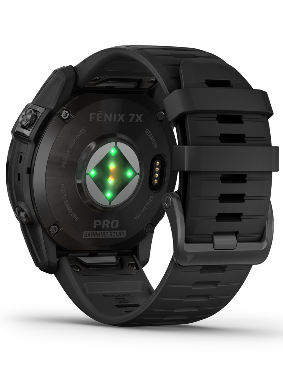 Fenix 7 Pro navigatie Verder hebben de fēnix 7 Pro horloges, net zoals de normale fēnix 7 serie, toegang tot meerdere wereldwijde navigatiesystemen (GPS, GLONASS, GALILEO). Met de Sapphire Solar uitvoeringen krijg je superieure nauwkeurigheid door technologie die voorheen alleen beschikbaar was voor het leger. Zo wordt de positienauwkeurigheid verbeterd in gebieden waar frequenties normaal gesproken zwak of helemaal niet doordringen.