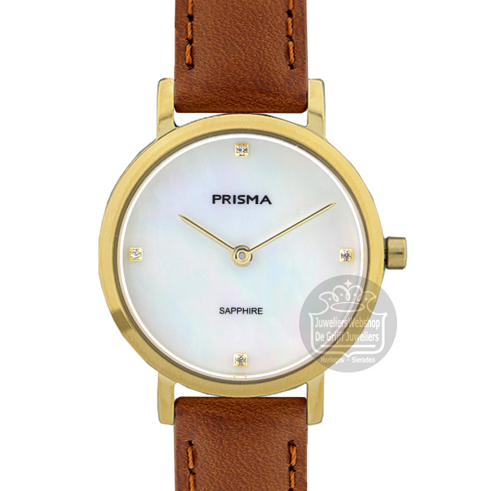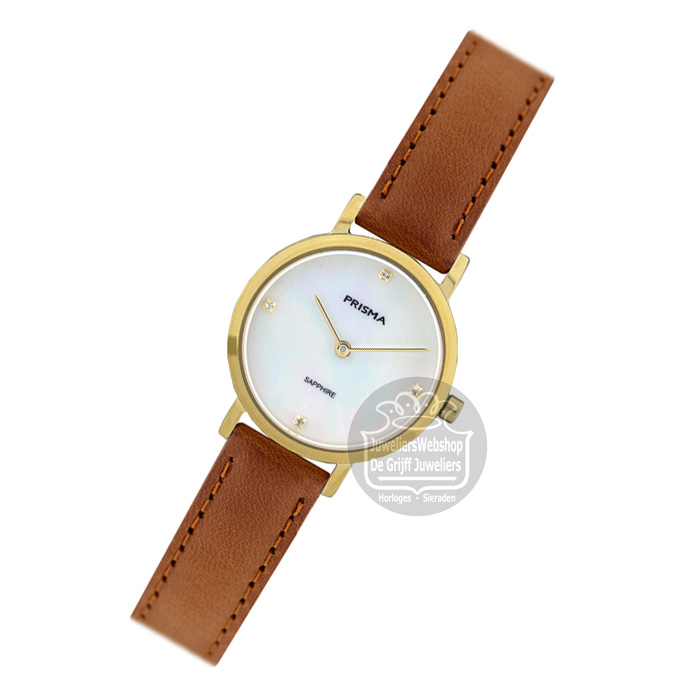 Prisma horloge P1403 dames Titanium Parelmoer Leer Goldplated