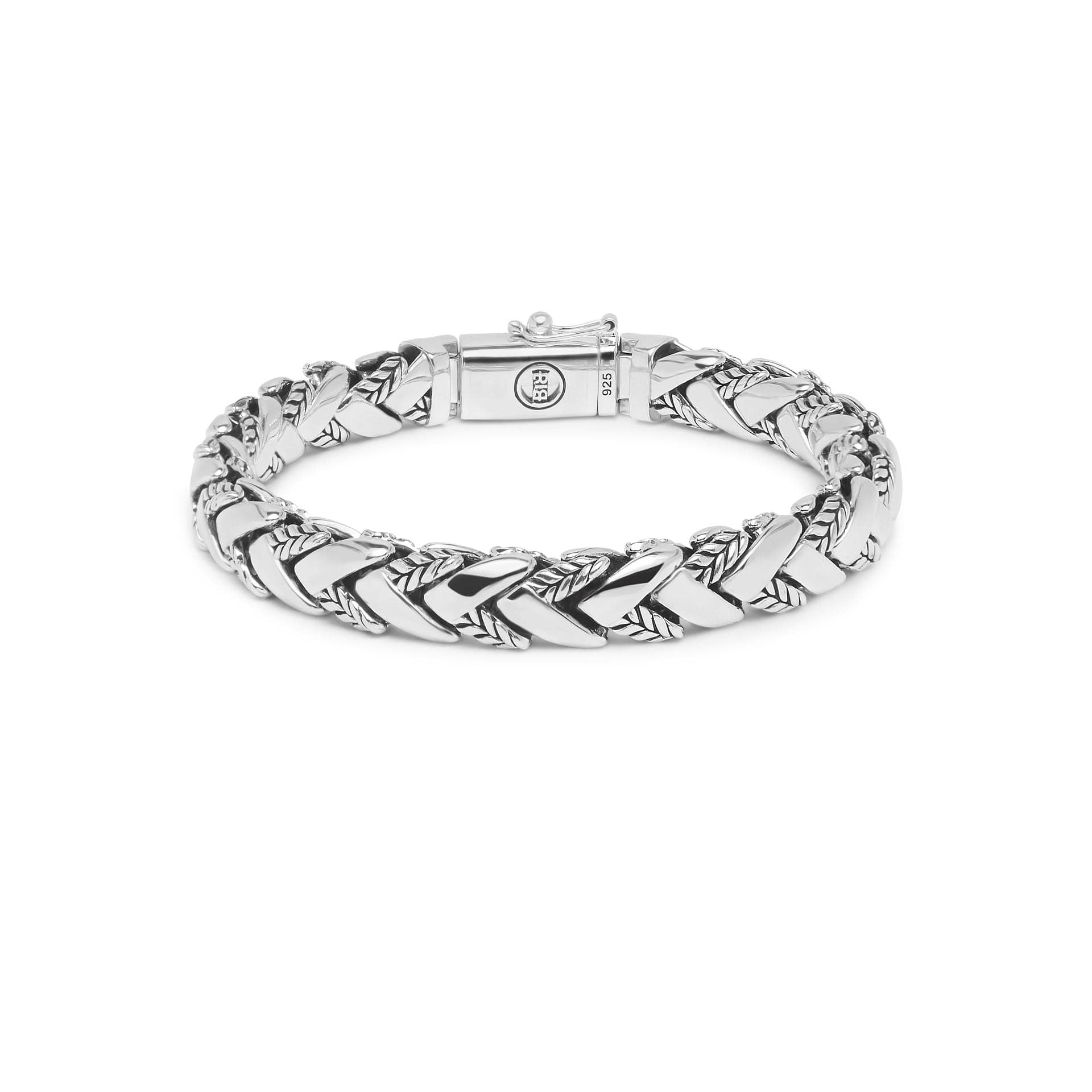 Deze zilveren George armband van Buddha to Buddha, is een handgemaakte echt zilveren armband van glad deels bewerkte inelkaar gevlochten schakels. De George Texture armband is nieuw in de Buddha to Buddha collectie. Doordat de Buddha armband tussen de schakels geoxideerd is, geeft dit een heel speciaal robuust effect. Deze armband is voorzien van een stijlvolle sluiting met het logo van Buddha to Buddha en valt soepel om de pols. Voor extra bescherming tegen verlies is de sluiting uitgevoerd met een extra veiligheid.
