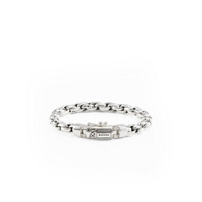 Deze zilveren armband van Buddha to Buddha uit de Edwin/Ben serie, is een handgemaakte echt zilveren armband, mooi smal met een doorelkaar gevlochten smalle schakel. Doordat de Buddha armband tussen de schakels geoxideerd is, geeft dit een heel speciaal robuust effect. De armband is voorzien van een stijlvolle sluiting met het logo van Buddha to Buddha. Voor extra veiligheid tegen verlies is de sluiting uitgevoerd met een extra veiligheid.