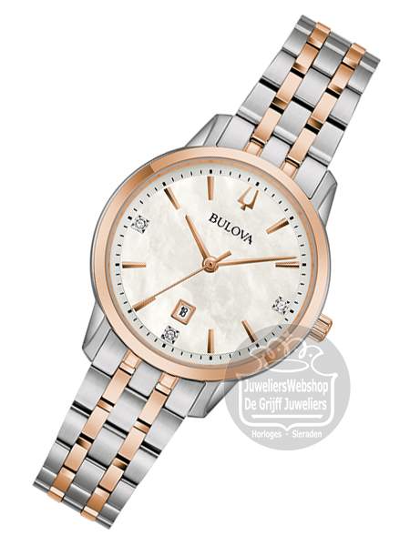 Bulova Sutton Classic Horloge 98P213 met Parelmoer Wijzerplaat met echte Diamanten