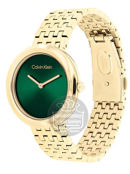 Calvin Klein horloge Twisted Bezel CK25100066 Goud Groen