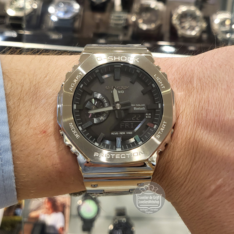 De G-SHOCK Gm-B2100 serie is een populair model. De wijzerplaat geeft de tijd analoog en de vele functies digitaal weer. Een geweldig horloge dat tegen een stootje kan. De Casio GM-B2100 is 20 Atm. waterdicht. Je kunt er prima mee zwemmen. Ideaal horloge voor de sportieve man, voor een vriendelijke prijs. De serie GM-2100 modellen is leverbaar in vele stoere of juist sportieve kleuren.