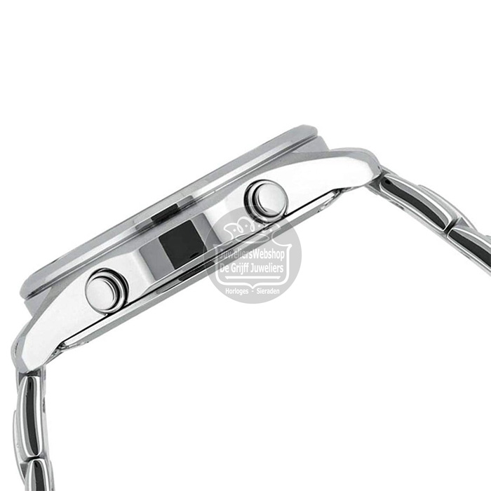 Het saffierglas is gecoat met een antireflecterende laag, waardoor het bestand is tegen krassen en goed zichtbaar is. Daarnaast heeft het praktische functies zoals een kalenderweergave, wereldtijd, alarmfuncties en een LED-lampje.