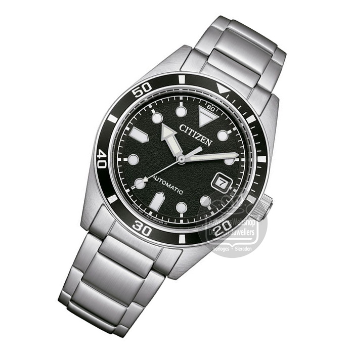 Het Citizen automatic horloge is uitgerust met een mechanisch uurwerk, energie uit beweging. Het Citizen horloge heeft een zilverkleurige edelstalen kast en een zilverkleurige edestalen band. Het horloge heeft een zwarte wijzerplaat met een duidelijke tijdsaanduiding, een datum functie, mineraalglas en is tot 10 atm waterdicht.