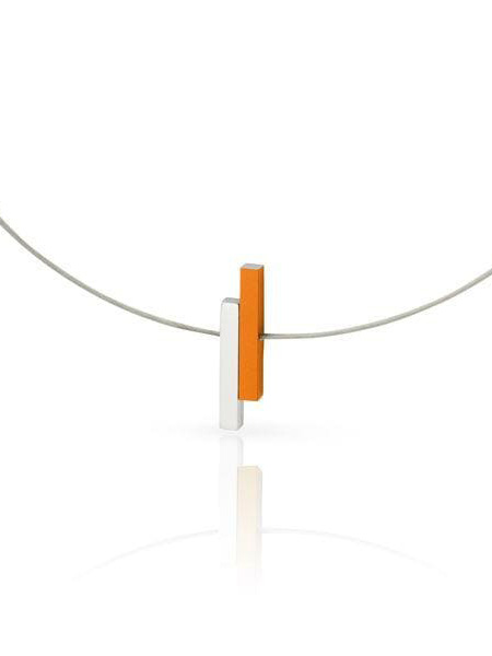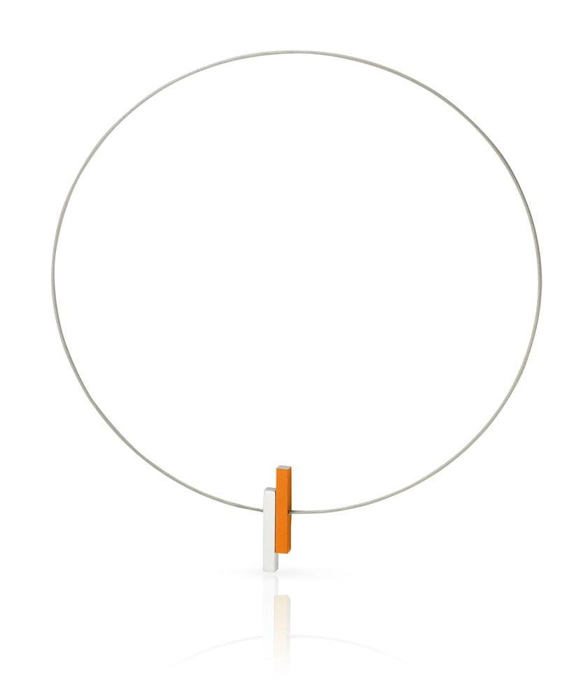 Clic Collier C116O staaldraad met twee staafjes in oranje en glanzend aluminium