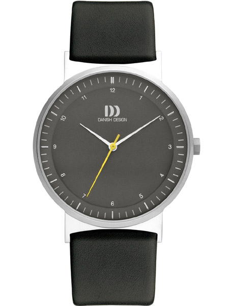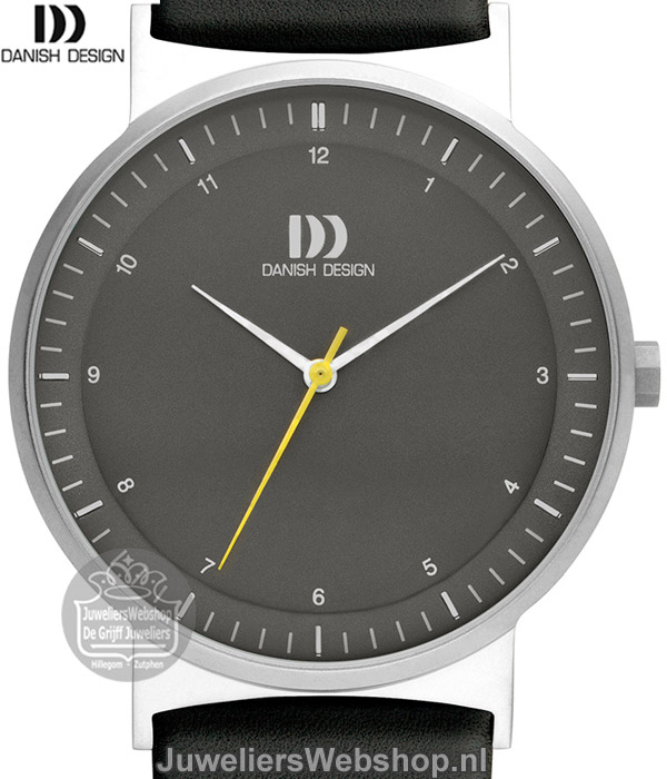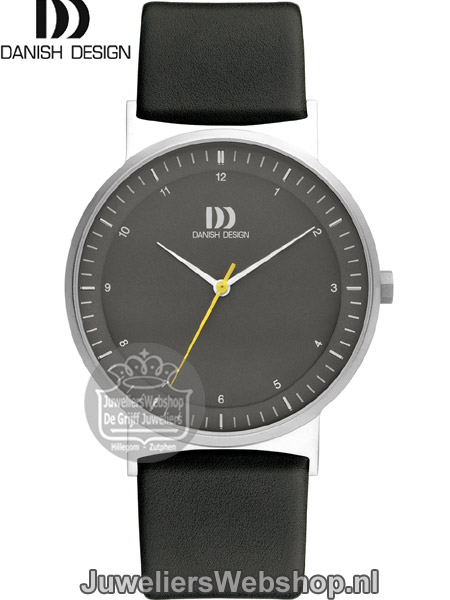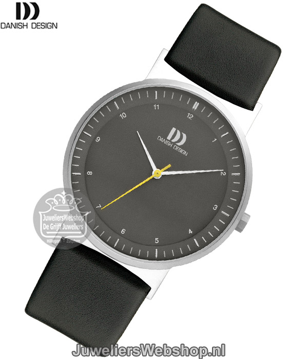 Het IQ14Q1189 herenhorloge van Danish Design uit de Design by Jan Egeberg collectie heeft een casual look met als leuk detail de gele secondewijzer. Het herenhorloge heeft een edelstalen kast, een zwart leren band en een grijze wijzerplaat met witte accenten en een gele secondewijzer. Het horloge heeft mineraal glas en is 5 atm waterdicht.