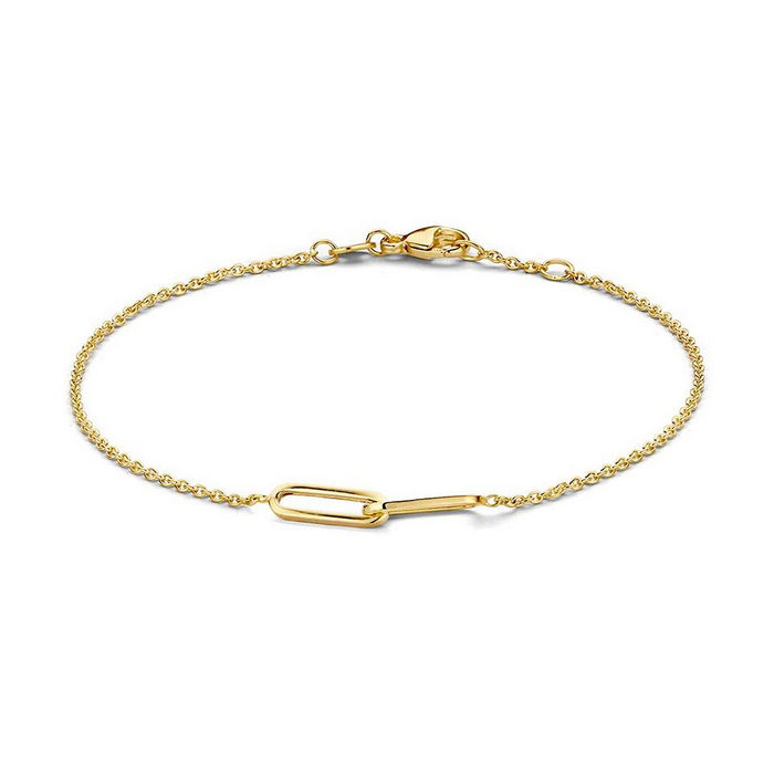 Een mooie geelgouden armband met 2 subtiele paperclipschakels in elkaar van Excellent Jewelry. De armband is gemaakt van echt goud 14karaat. De armband is modern en tijdloos en kan goed worden gecombineerd met andere gouden armbanden.