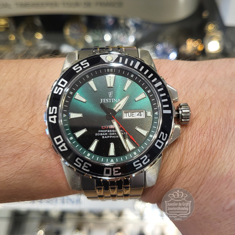 Festina heren sport horloge F20661/2 staal met groene wijzerplaat