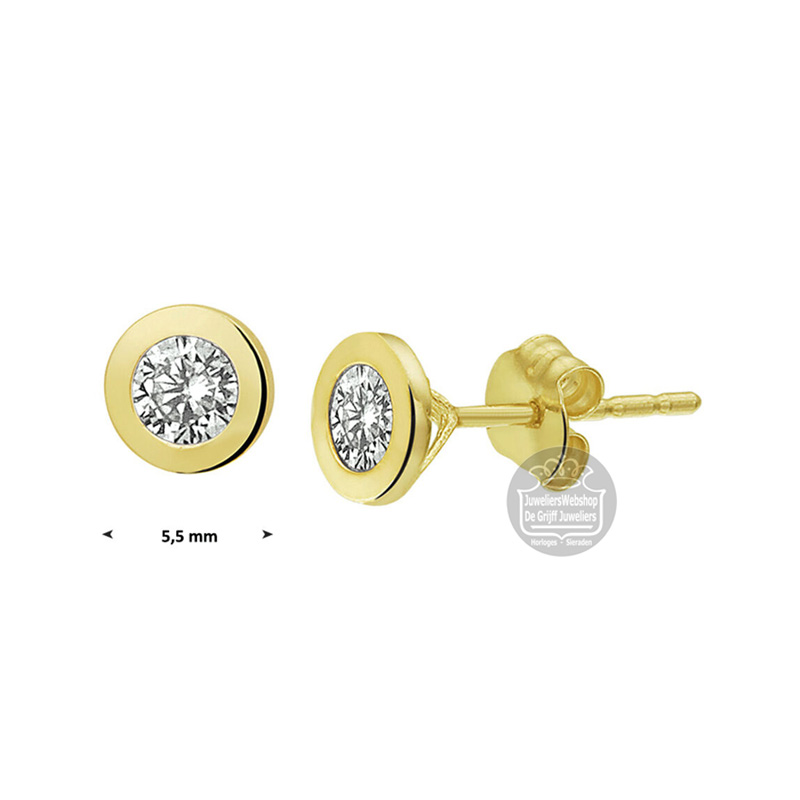 Gouden Oorknoppen solitair met Zirkonia 5.5 mm.