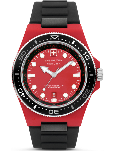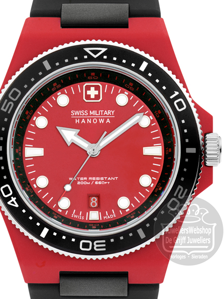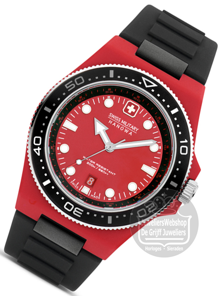 De Ocena Pioneer van Swiss Military Hanowa, is een stoer, robuust, sportief en een uiterst betrouwbaar duikhorloge en is bovendien “Swiss Made”. Dit Zwitsers horloge heeft een rode plastic kast met een zwarte siliconen band. Het horloge heeft een rode wijzerplaat, krasvast saffier glas en is 20 atm waterdicht.