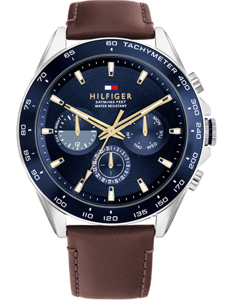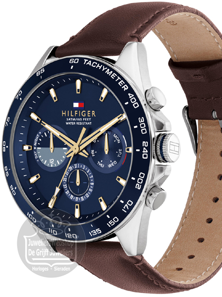 Het Tommy Hilfiger Owen horloge is een sportief en trendy heren horloge. Het horloge heeft een edelstalen horlogekast en een bruine leren band. Het horloge heeft een blauwe wijzerplaat met goudkleurige en witte accenten, een dag-, datum- en 24uurs aanduiding. Het Tommy Hilfiger horloge heeft mineraal glas, is waterdicht tot 5 atm en wordt geleverd met een originele Tommy Hilfiger watch box.