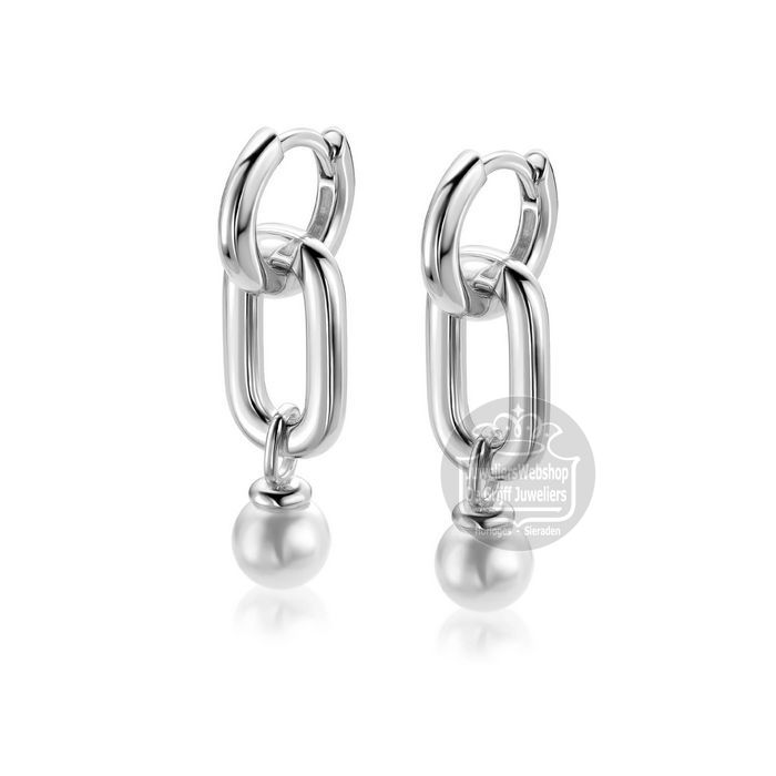 ZINZI zilveren oorbedels met een langwerpige stoere schakel (23mm) en een bungelende witte parel (6mm). De oorbedels zijn vervaardigd van eerste gehalte zilver (925) met rodiumlaag voor een langdurige glans.