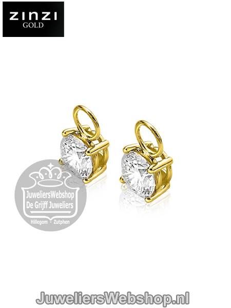 ZINZI Gold ZGCH143 14 karaat gouden creoolhangers waarbij de ronde witte zirconia met enkele pootjes is gezet. Hierdoor schittert de witte zirconia extra. Hang deze creoolhangers sierlijk aan je gouden creolen uit de Zinzi Gold collectie.