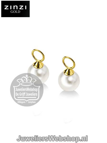 Zinzi Gold ZGCH144 Creolenhangers Goud Parel Wit