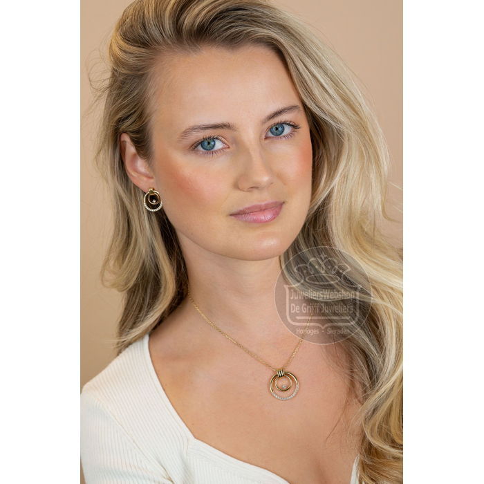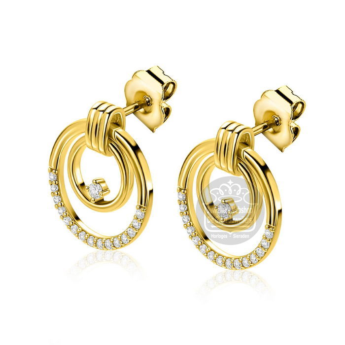 Zinzi Oorknoppen ZIO2819 verguld dubbele cirkel zirkonia