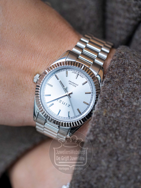 Het Zinzi Solaris ZIW2102 dameshorloge heeft een zilverkleurige edelstalen kast en een massieve zilverkleurige schakelband. Het horloge heeft een zilverkleurige sunray wijzerplaat, sterk mineraal glas en is 5 ATM waterdicht (regen- en spatwaterdicht).