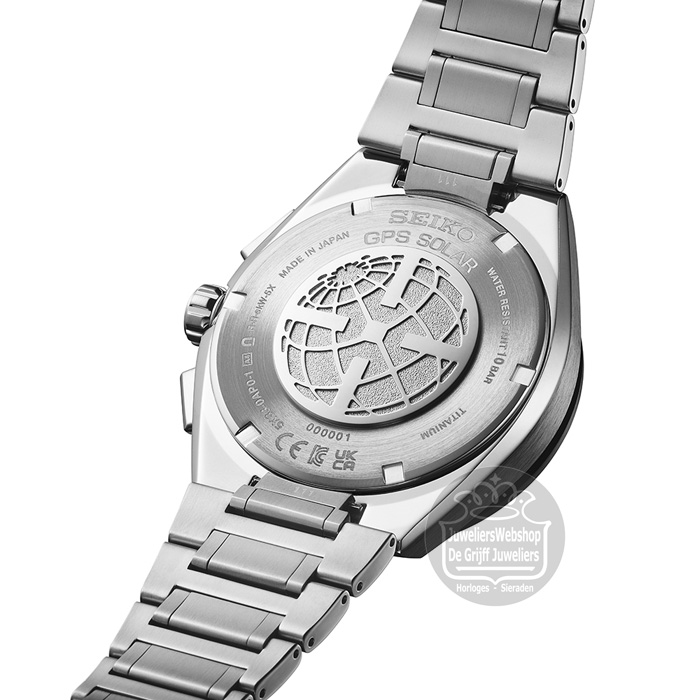 - Tijdsaanduiding: Analoog / Dual-Time- Kaliber: 5X83- Satelliet gestuurd, tijdzone en datum aanpassing- Wereldtijd 39 tijdzones- GPS-signaal indicator- Solar power, geen batterij nodig- Perpetual Calendar tot februari 2100- Materiaal kast: titanium- Soort glas: krasvast Saffier ontspiegeld- Weergave: Uren, Minuten, Seconden, Datum, 24-uurs aanduiding, Gangreserve-aanduiding, Dual-Time, ontvangstresultaat weergave, status satellietverbinding weergave,- Waterdicht: 10 ATM / 100 M