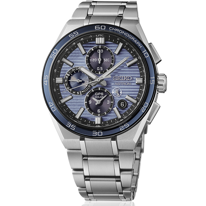 Seiko Astron horloge SSH175J1 GPS Solar herenhorloge Dual Time Titanium Blauw