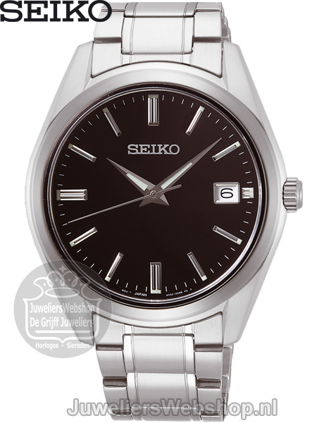 Seiko horloge SUR311P1 Stalen Herenhorloge met zwarte wijzerplaat