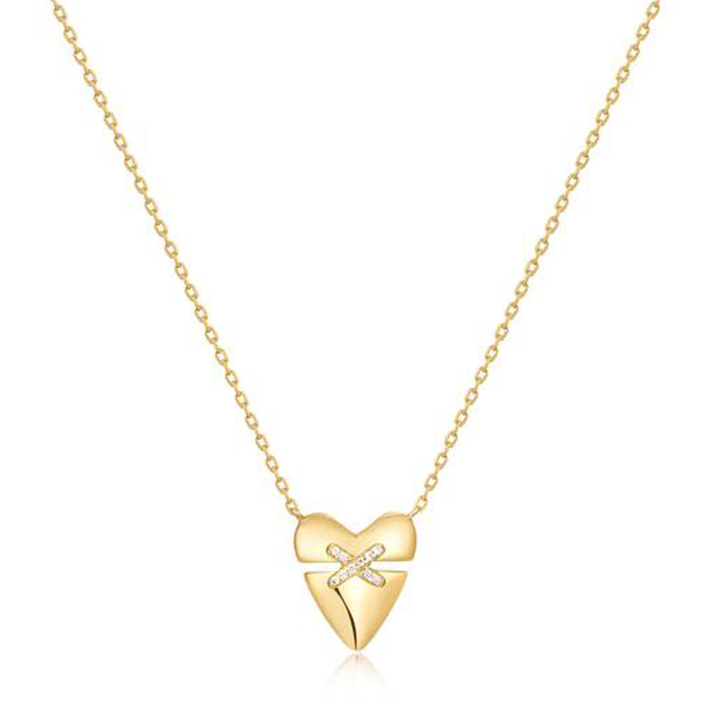 Ania Haie Gold Heart Kiss Pavé Necklace N057-02G Collier Verguld
