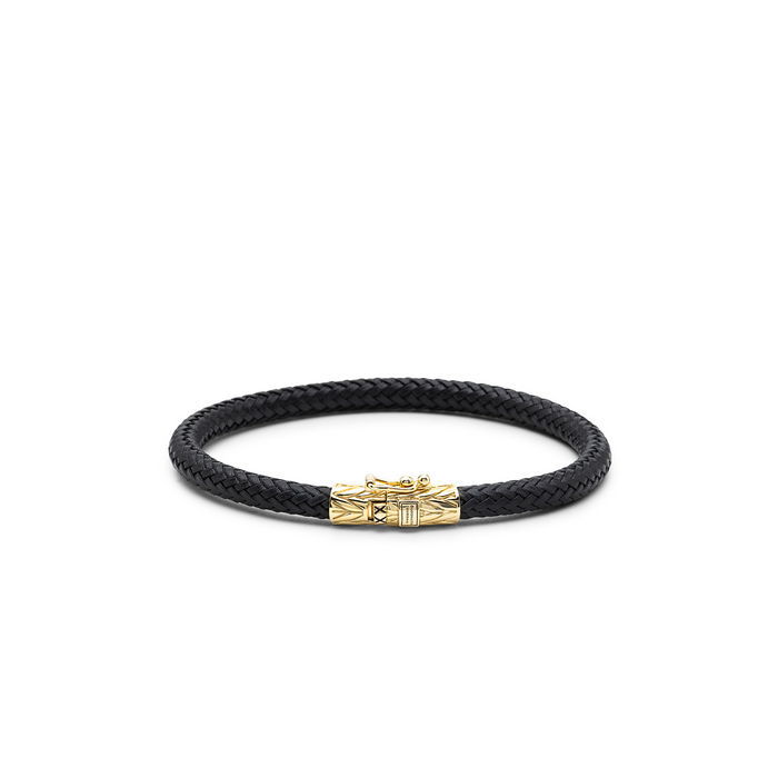 - Echt lederen band, Zwart- 925 Sterling Zilver, verguld- Lengte E ca. 19 cm- Breedte ca. 5mm- Binnenmaat armband valt als 18 cm!- Stevige en solide goudkleurige sluiting met veiligheids achtje.