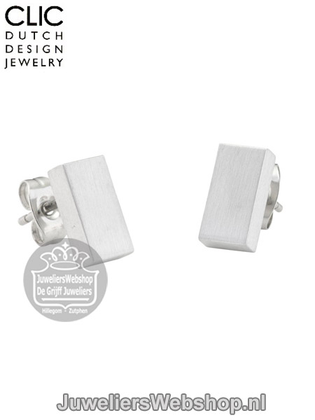 Clic Oorstekers O23mat rechthoekige oorknopjes zilverkleurig mat