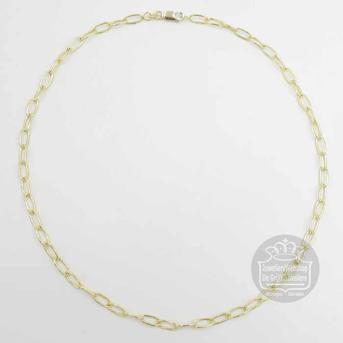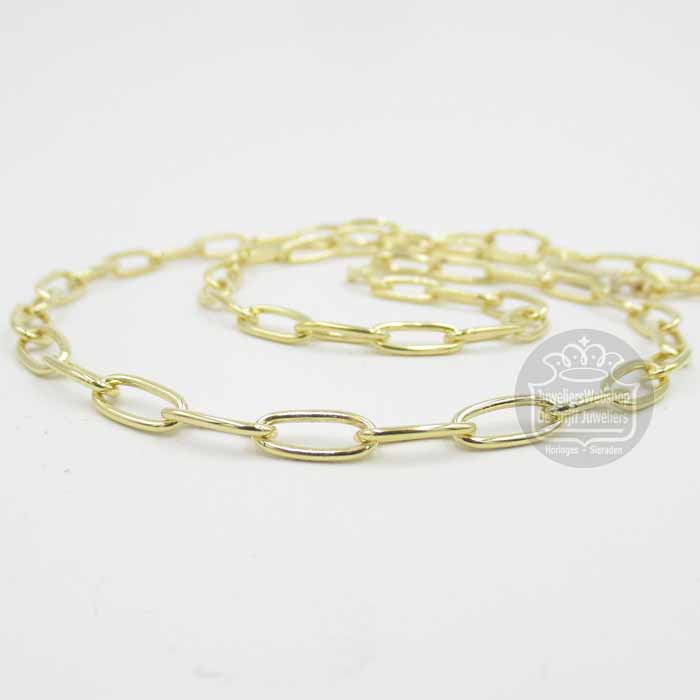 Fjory Massief Gouden Fantasie Anker Collier 40-ANK04545 45cm met Zilveren KernDit Anker collier met ovale schakels van Fjory is uitgevoerd in 14 karaat geelgoud. Deze klassieke schakel heeft een speelse uitstraling. De schakel is 4,5 mm breed en het collier is 45 cm lang. Maak je look compleet met de bijpassende armbanden van Fjory.De collectie van Fjory bestaat uit luxe massieve 14 karaat gouden sieraden met een kern van zilver. Met deze pure kwaliteit van Nederlandse bodem krijg je geen deukjes in je sieraden.Specificaties Fjory Anker Collier 40-ANK04545:- Type sieraad: Collier - Materiaal: 14krt Goud 585, met een kern van 925 zilver- Lengte: 45 cm- Breedte schakel: 4,5 mmFjory Gouden Sieraden bij JuweliersWebshop.nl - Gratis verzekerde verzending in Nederland