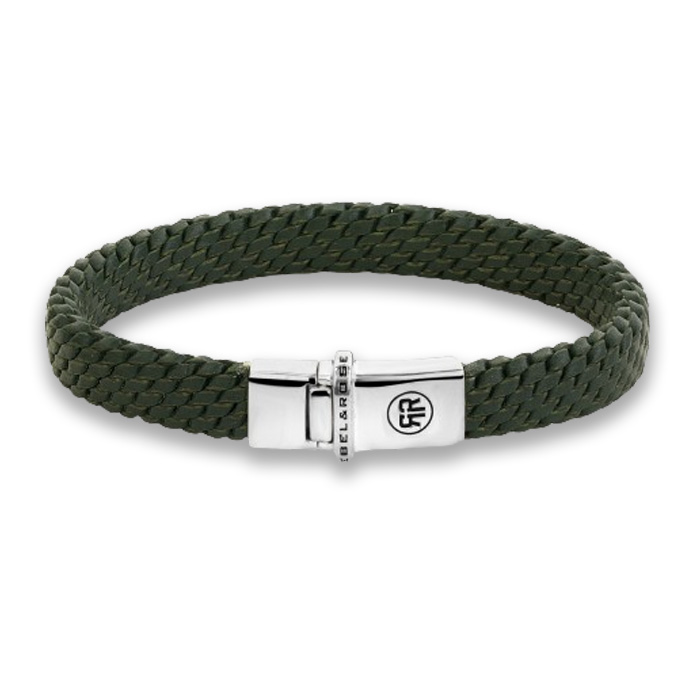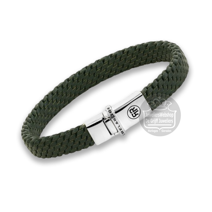 - Mastery Collection- Artikel nr: RR-L0180-S-M- Groen leer, gevlochten- Stevige en solide baksluiting 925 sterling zilver- Lengte: 17.5cm