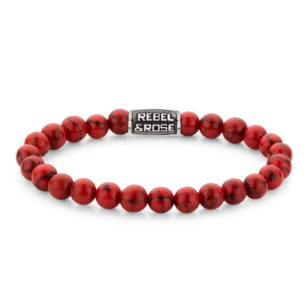 Trendy en stoere Rebel & Rose armband voor dames en heren in rode kleuren uit de serie Stones Only. De RR-80099-V-L Rebel en Rose armband is gemaakt van rood natuursteen. De armband heeft als eyecatcher het edelstalen Rebel & Rose logo. De lengte van de armband is 19 cm. Alle Rebel and Rose bracelets worden gemaakt van de beste materialen. Een Rebel & Rose armband is een stoere armband voor dames en heren en perfect te combineren met andere juwelen en diverse outfits.