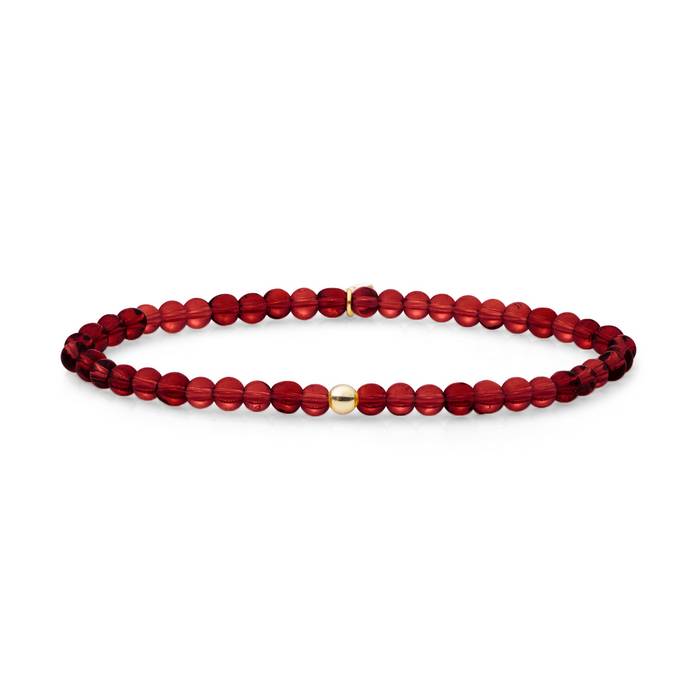 -Naam: Ruby Quartz Saturn Small Gemstone Bracelet 4mm-Artikelnr: SBG-GEM50-ADD-4MM-Maat van de armband: 18,5 cm-Maat van de kralen: 4 mm-Materiaal: sterling zilver, verguld-Kleur: geel verguld, glanzend afgewerkt-Steensoort: kwarts-Kleur: rood