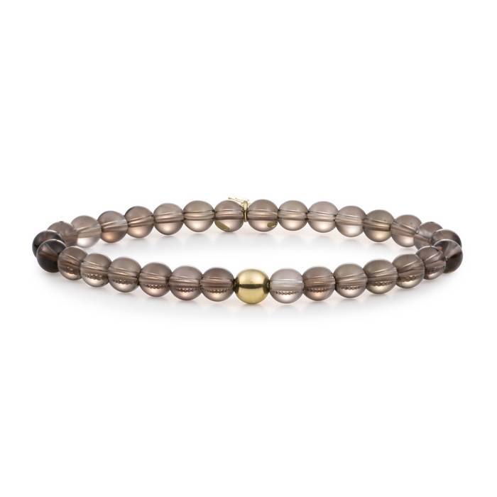-Naam: Smoky Quartz Saturn Small Gemstone Bracelet 6mm-Artikelnr: SBG-GEM23-ADD-6MM-Maat van de armband: 18,5 cm-Maat van de kralen: 6 mm-Materiaal: sterling zilver, verguld-Kleur: geel verguld, glanzend afgewerkt-Steensoort: kwarts-Kleur: bruin