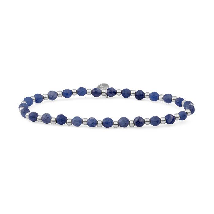 -Naam: Sodalite Interstellar Gemstone Bracelet-Artikelnr: SB-GEM20-3MM-MIX-Maat van de armband: 18,5 cm-Maat van de zilveren kralen: 3 mm-Maat van de edelsteen kralen: 4 mm-Materiaal: sterling zilver, gerhodineerd-Kleur: zilver, glanzend afgewerkt-Steensoort: sodaliet-Bewerking: gefacetteerd-Kleur: blauw