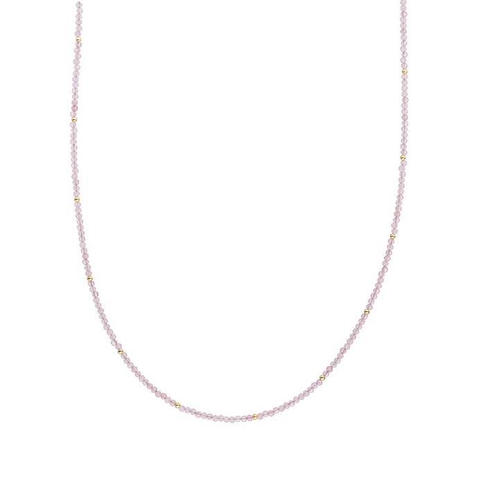 -Naam: Essential Beaded Necklace 2mm Pink Opalite-Artikelnr: NLK04G-G66-Materiaal: sterling zilver, verguld, glanzend afgewerkt-Kleur: oudroze, goudkleurig-Steensoort: Kwarts-Lengte: 42 + 2 cm-Dikte: 2 mm