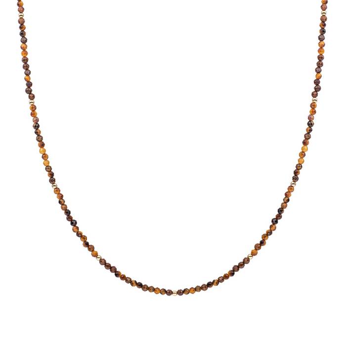 -Naam: Essential Beaded Necklace 2mm Tiger Eye-Artikelnr: NLK04G-G09-Materiaal: sterling zilver, verguld, glanzend afgewerkt-Kleur: bruin, goudkleurig-Steensoort: Tijgeroog-Lengte: 42 + 2 cm-Dikte: 2 mm